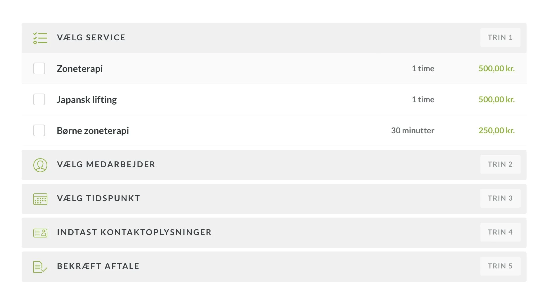 Vælg hvilken behandlingsform du ønsker at bestille tid til herunder.
